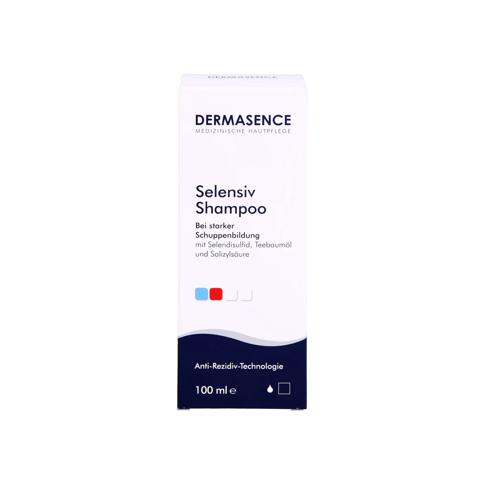 Das medizinische Shampoo wirkt mit dem Aktivstoff Selendisulfid hartnäckigen Schuppen bei fettiger und trockener Kopfhaut entgegen. Beugt mit seiner Anti-Rezidiv-Technologie der Neubildung von Schuppen vor. Teebaumöl entfaltet seine natürliche antimikrobielle Wirkung bei jeder Haarwäsche.Charakteristik:- Wirkt mit dem Aktivstoff Selendisulfid trockenen, rieselnden Schuppen entgegen- Beugt mit Anti-Rezidiv-Technologie der Neubildung von Schuppen vor- Teebaumöl entfaltet seine natürliche antimikrobielle Wirkung bei jeder Haarwäsche- Salizylsäure unterstützt das Lösen von Schuppen- Die Kopfhaut wird mit Feuchtigkeitsspendern versorgt- Frei von Betain- Dermatologisch getestetAnwendung:Vor Gebrauch schütteln. Je nach Haarlänge eine hasel- bis walnussgroße Menge auf die feuchte Kopfhaut auftragen und einmassieren. Kurz einwirken lassen und abspülen. Als Kur wenden Sie es zwei bis drei Wochen an, anschließend ein- bis zweimal wöchentlich im Wechsel mit einem milden Shampoo, z.B. DERMASENCE Milchserum Shampoo, verwenden.