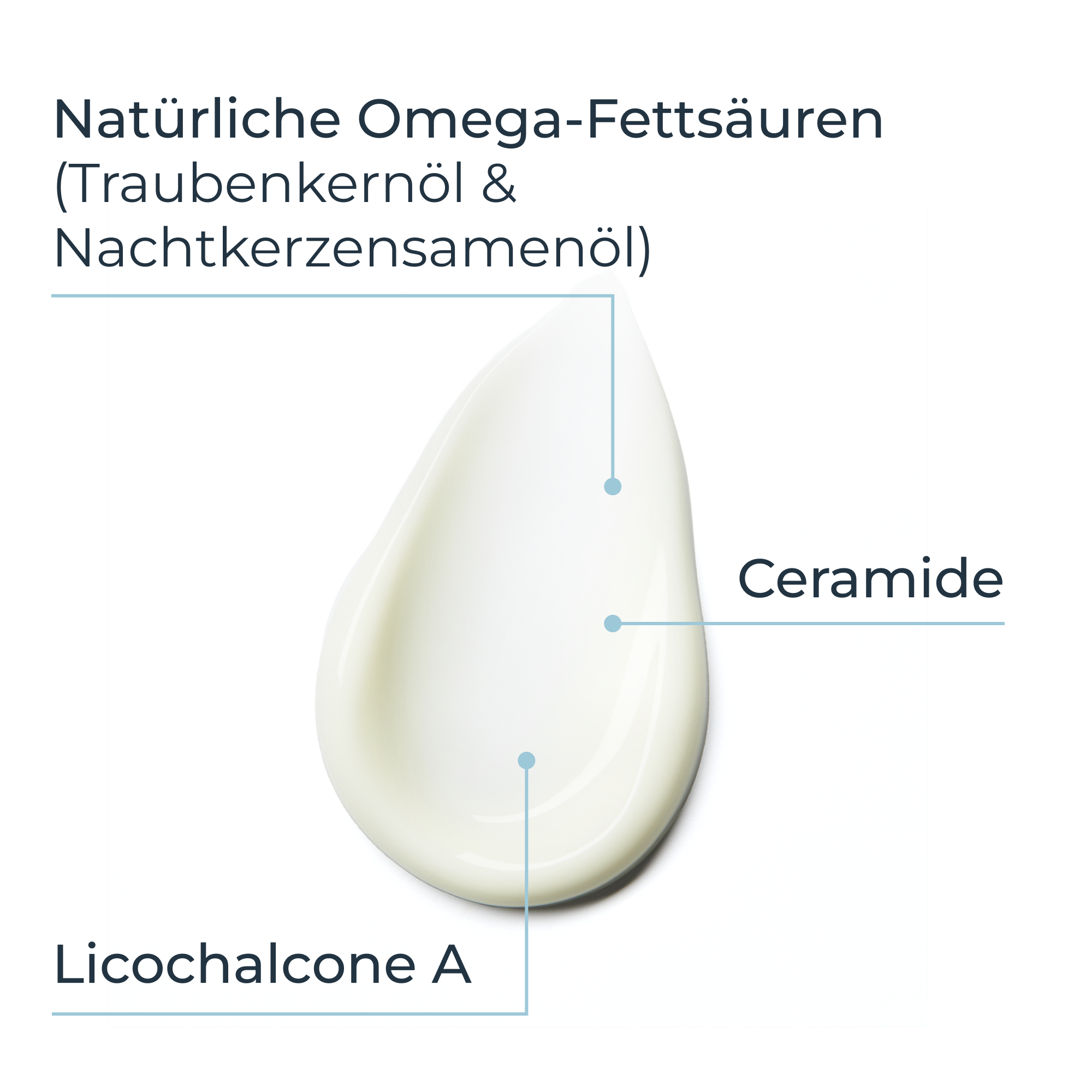 Aqua, Glycerin, Vitis Vinifera Seed Oil, Oenothera Biennis Oil, Caprylic/Capric Triglyceride, Cyclomethicone, Dimethicone, Pentaerythrityl Tetraisostearate, Triisostearin, Cetyl Alcohol, Glyceryl Stearate, PEG-40 Stearate, Glycyrrhiza Inflata Root Extract, Ceramid-3, Tocopherol, Citric Acid, Sodium Citrate, Ascorbyl Palmitate, BHT, 1,2-Hexanediol, Phenoxyethanol, Pirocton Olamin