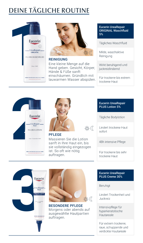 Ein unabhängiges Expertenpapier empfiehlt die Hautpflege mit Urea bei trockener Haut.