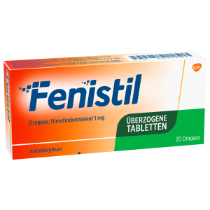 Anwendungsgebiete von Fenistil Dragees im Überblick: Das Antiallergikum Fenistil Dragees eignet sich zur symptomatischen Linderung von Histaminbedingtem Juckreiz Windpockenassoziiertem Juckreiz bei Kleinkindern Allergischem Schnupfen bei Patienten über 6 Jahren Nesselsucht (Urtikaria) Anwendung von Fenistil Dragees Falls vom Arzt nicht anders verordnet, ist dies die übliche Dosis Kinder ab 3 Jahren nehmen maximal 3-mal täglich 1 überzogene Tablette ein. Erwachsene und Jugendliche ab 12 Jahren nehmen 3-mal täglich 1-2 überzogene Tabletten ein. Für Patienten, die zu Schläfrigkeit neigen, wird empfohlen 2 Tabletten vor dem Schlafengehen und 1 Tablette am Morgen einzunehmen. Fenistil Dragees sollten nicht länger als 14 Tage ohne Rücksprache mit dem Arzt angewendet werden. Die überzogenen Tabletten sollten mit ausreichend Flüssigkeit eingenommen werden.