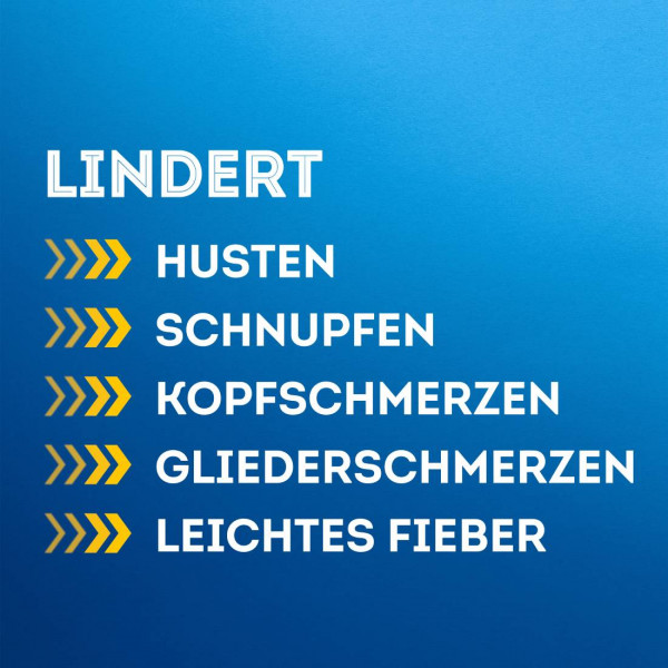 - Lindert Erkältungs- und Grippesymptome wie Husten und Schmerzen.